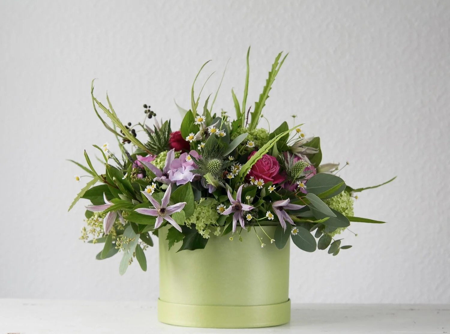 This seasonal arrangement is delightful, bursting with scented florals and textural foliages.